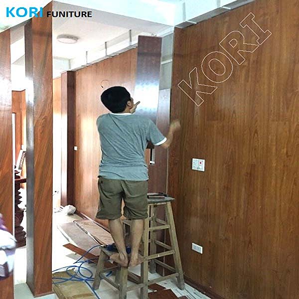 Ốp tường gỗ công nghiệp, kori.com.vn chuyên cung cấp và thi công tấm tường gỗ hdf, tấm nhựa vân gỗ. Trên 10 năm kinh nghiệm ốp tường trần, kori cam kết bảo hành trọn đời và bảo trì vĩnh viễn sản phẩm ốp tường do kori cung cấp.