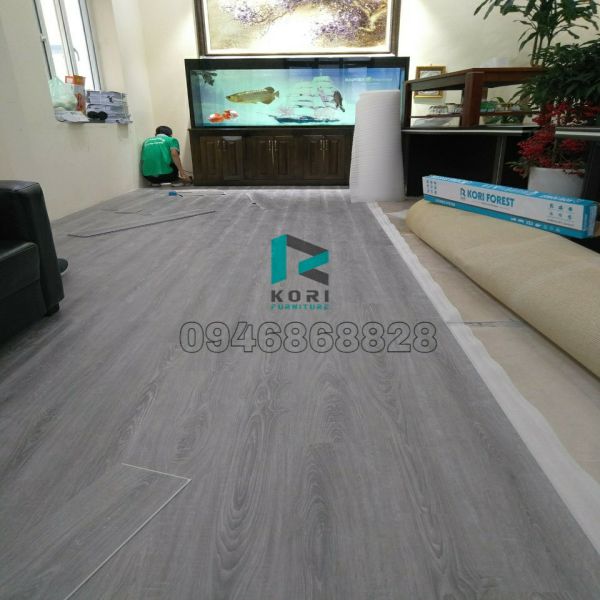 Chị đã lên mạng tìm hiểu và quyết định thay bằng sàn nhựa giả gỗ hèm khóa 4mm của Hàn Quốc.