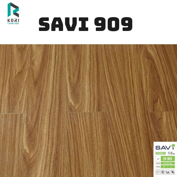 Thiết kế hiện đại: Với bề mặt mượt mà và họa tiết tự nhiên, Sàn gỗ Savi SV909 mang đến vẻ đẹp tinh tế và hiện đại cho không gian. Họa tiết và màu sắc được lựa chọn cẩn thận để phù hợp với nhiều phong cách trang trí.