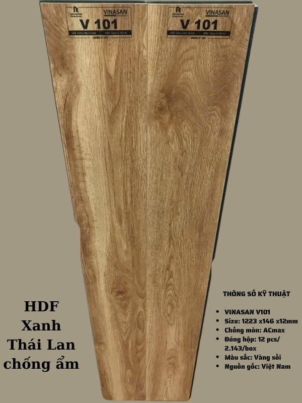 Sàn gỗ Vinasan V101. Tông màu sàn gỗ công nghiệp Vinasan V101, báo giá ván sàn gỗ Thái Lan với hdf nhập khẩu cao cấp. KORI.COM.VN chuyên gia hàng đầu trong lĩnh vực về nền sàn tại Việt Nam.