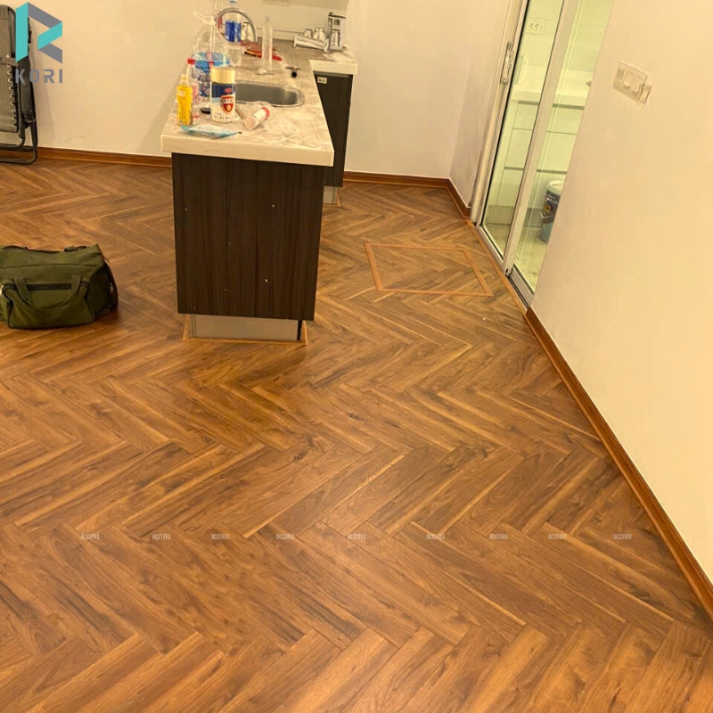 - Kiểu lát: Xương cá (Herringbone) kiểu ghép hèm khóa