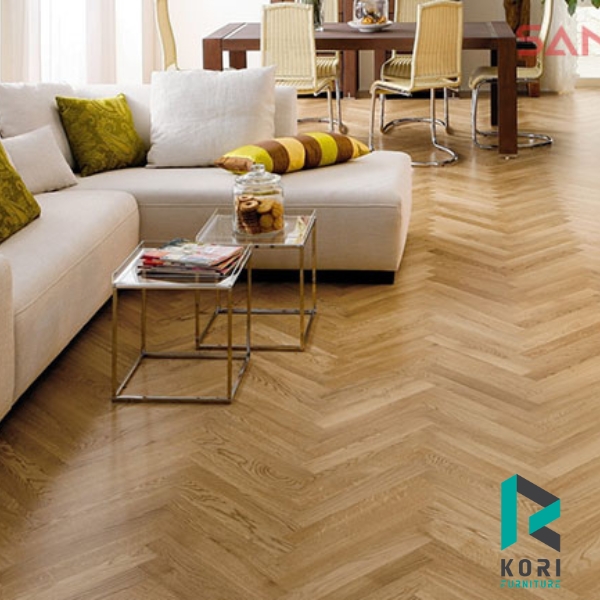 Mẫu hình học độc đáo: Thiết kế xương cá tạo ra một mẫu hình chéo đặc biệt, giống như các mảng xương cá thật sự. Điều này tạo nên một cái nhìn sắc nét và tạo điểm nhấn cho không gian, làm cho sàn gỗ trở thành một phần quan trọng của thiết kế nội thất.