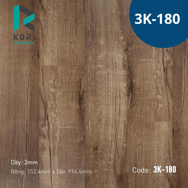 Sàn nhựa 3K vinyl là một loại sàn được làm từ nhựa PVC. Nó bao gồm ba lớp khác nhau: lớp trên cùng là một lớp vinyl trong suốt để bảo vệ, lớp giữa là lớp in họa tiết và lớp dưới cùng là lớp bảo vệ chống thấm nước. Với những tính năng đó, sàn nhựa 3K vinyl có thể phù hợp với nhiều mục đích sử dụng như phòng khách, phòng ngủ, phòng tập gym, phòng làm việc,...