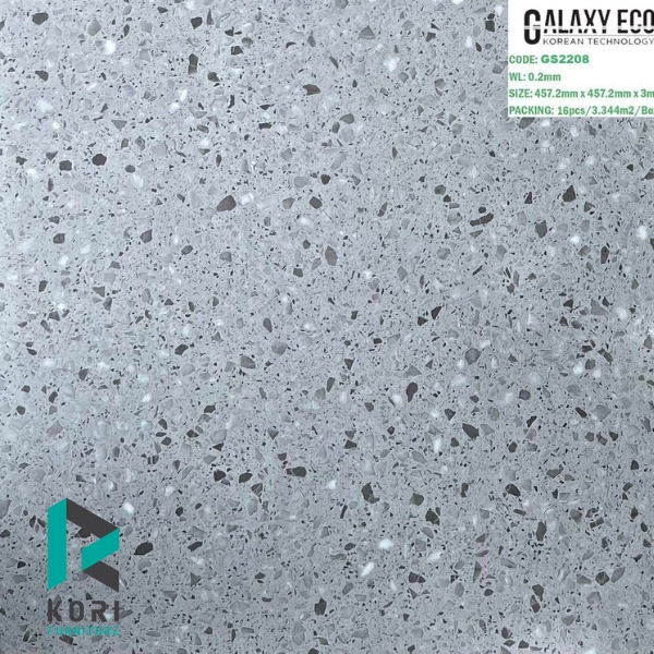 Sàn nhựa Galaxy GS2208 có vân thảm đẹp. Ván sàn nhựa chính hãng không thấm nước, không mối mọt, không cong vênh co ngót, chống cháy, chống trơn trượt. Khó bị tác động bởi nước tẩy. Kích thước 455mm x 455mm x 3mm. Bề mặt : Vân thảm.