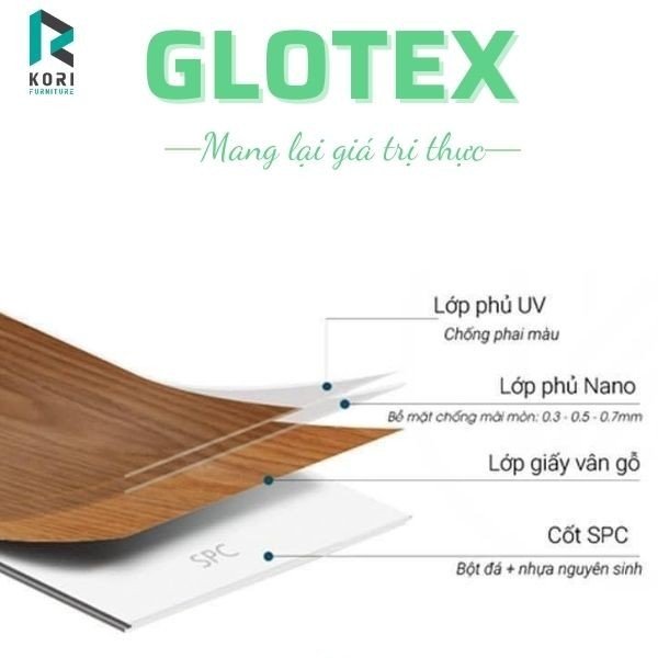 Sàn nhựa GLOTEX có độ bền cao, dễ lắp đặt và vệ sinh, cũng như có tính thẩm mỹ cao và đa dạng về mẫu mã. Nó được sử dụng rộng rãi trong các công trình xây dựng, nhà ở, cửa hàng và văn phòng.