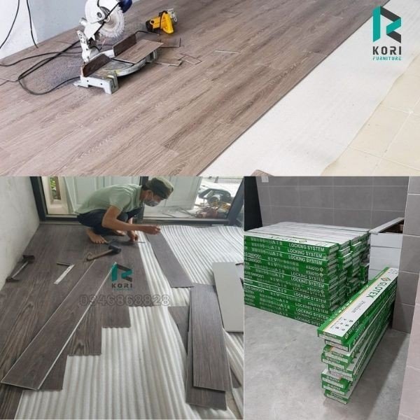 Bước 2: Cắt và lắp đặt sàn nhựa giả gỗ Glotex