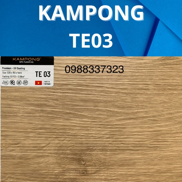 Sản phẩm sàn nhựa hèm khóa 4mm KamPong TE03 được làm từ chất liệu nhựa PVC cao cấp, chịu được ánh sáng mặt trời, chống trầy xước và mài mòn, đảm bảo độ bền và tuổi thọ cao cho sàn. Với độ dày 4mm, TE03 cung cấp sự ổn định và cứng cáp cho sàn, giúp nó chịu được tải trọng và sử dụng lâu dài mà không bị biến dạng.