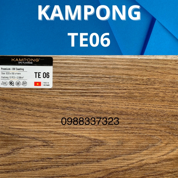 Sản phẩm sàn nhựa hèm khóa 4mm KamPong TE06 được làm từ chất liệu nhựa PVC cao cấp, chịu được ánh sáng mặt trời, chống trầy xước và mài mòn, đảm bảo độ bền và tuổi thọ cao cho sàn. Với độ dày 4mm, TE06 cung cấp sự ổn định và cứng cáp cho sàn, giúp nó chịu được tải trọng và sử dụng lâu dài mà không bị biến dạng.