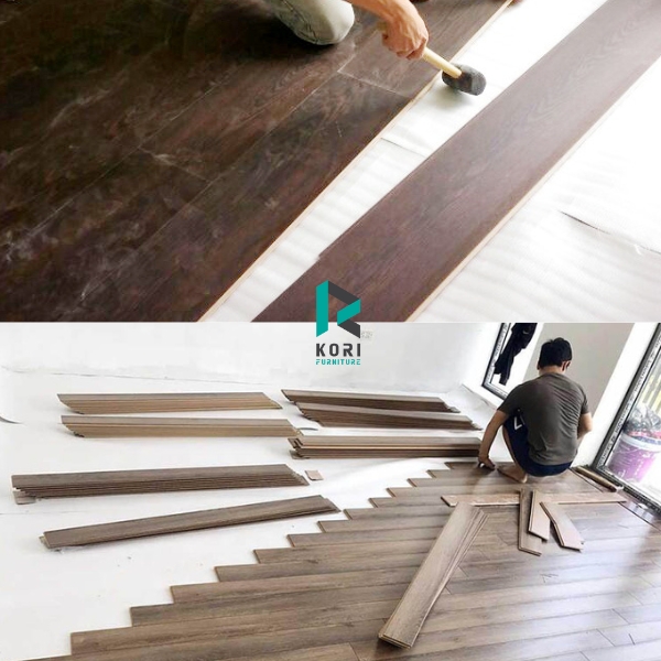 Chuẩn bị bề mặt: Bề mặt sàn cần được làm sạch, phẳng và khô ráo. Nếu bề mặt có nếp gấp hoặc vết lõm, cần phải bằng phẳng bằng cách sử dụng keo hoặc chất đổ.